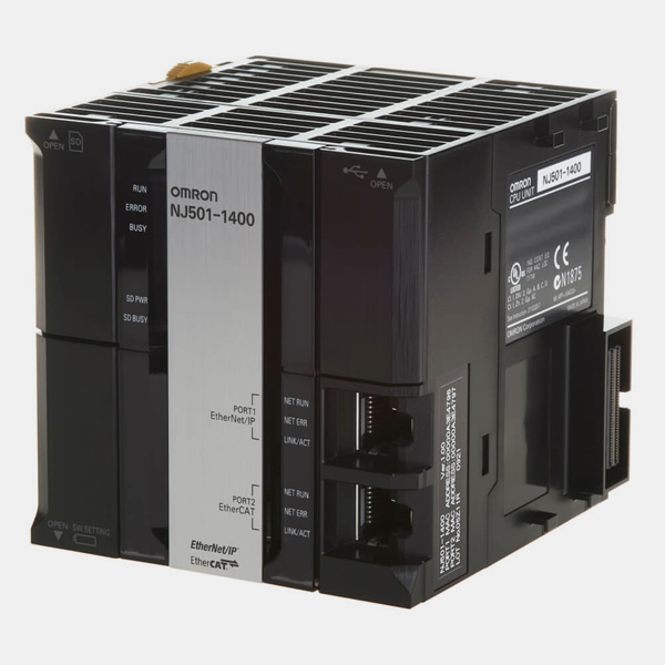 Omron NJ501-1400 Sysmac NJ5 CPU, 20 mB memory, built-in EtherCAT (32 servo axes, in total 192 EtherCAT nodes) and EtherNet/IP.
